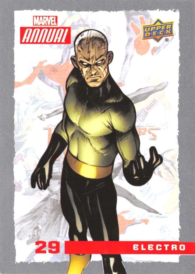Posted byKing Paradox August 19, 2017July 31, 2019 Leave a comment on Upper Deck Marvel Annual (2016) #29 Electro Share this: Share on X (Opens in new window) X Share on Facebook (Opens in new window) Facebook Like Loading... Related Published by King Paradox Just a guy trying to figure out this crazy thing called life. View more posts