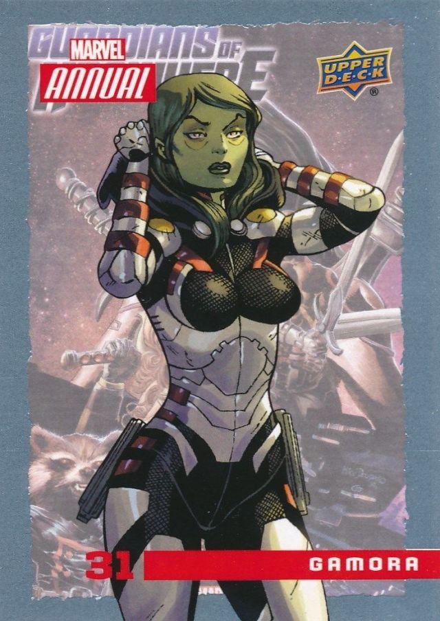 Posted byKing Paradox August 19, 2017July 31, 2019 Leave a comment on Upper Deck Marvel Annual (2016) #31 Gamora Share this: Share on X (Opens in new window) X Share on Facebook (Opens in new window) Facebook Like Loading... Related Published by King Paradox Just a guy trying to figure out this crazy thing called life. View more posts