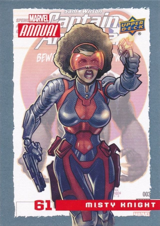 Posted byKing Paradox August 19, 2017July 31, 2019 Leave a comment on Upper Deck Marvel Annual (2016) #61 Misty Knight Share this: Share on X (Opens in new window) X Share on Facebook (Opens in new window) Facebook Like Loading... Related Published by King Paradox Just a guy trying to figure out this crazy thing called life. View more posts