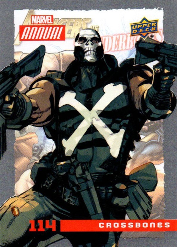 Posted byKing Paradox August 20, 2017July 31, 2019 Leave a comment on Upper Deck Marvel Annual (2016) #114 Crossbones Share this: Share on X (Opens in new window) X Share on Facebook (Opens in new window) Facebook Like Loading... Related Published by King Paradox Just a guy trying to figure out this crazy thing called life. View more posts