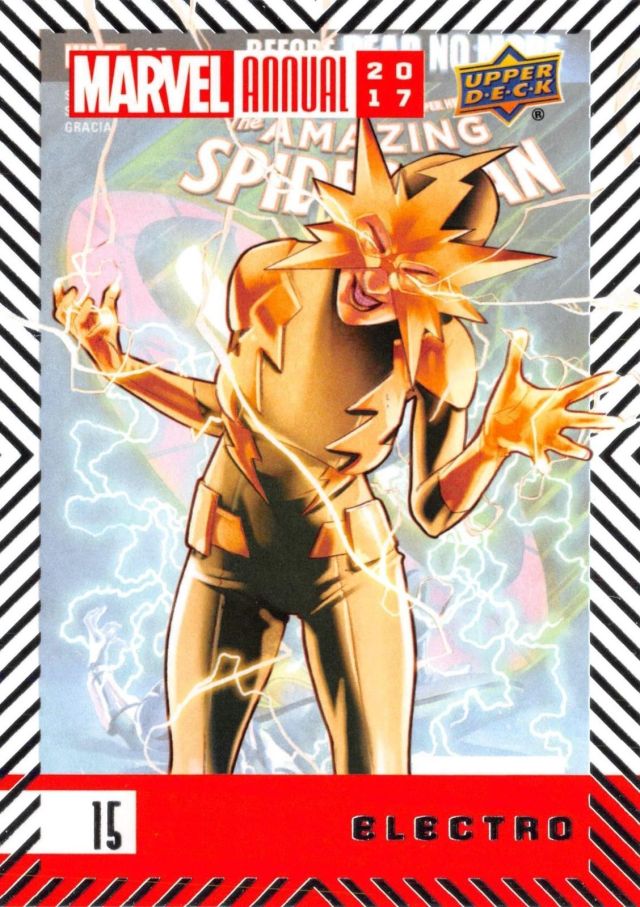 Posted byKing Paradox August 31, 2018July 31, 2019 Leave a comment on Upper Deck Marvel Annual (2017) #15 Electro Share this: Share on X (Opens in new window) X Share on Facebook (Opens in new window) Facebook Like Loading... Related Published by King Paradox Just a guy trying to figure out this crazy thing called life. View more posts