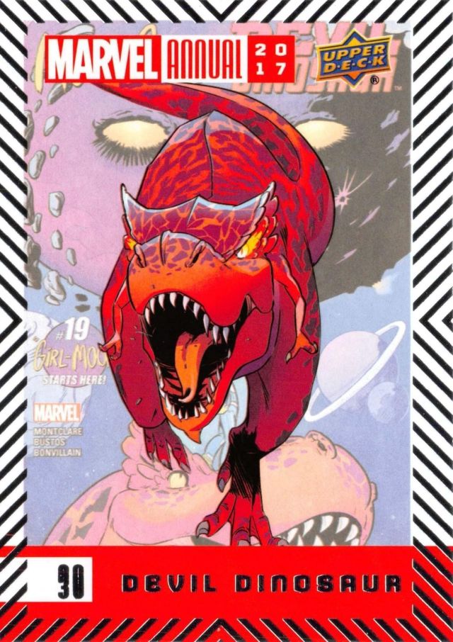 Posted byKing Paradox September 2, 2018July 31, 2019 Leave a comment on Upper Deck Marvel Annual (2017) #30 Devil Dinosaur Share this: Share on X (Opens in new window) X Share on Facebook (Opens in new window) Facebook Like Loading... Related Published by King Paradox Just a guy trying to figure out this crazy thing called life. View more posts