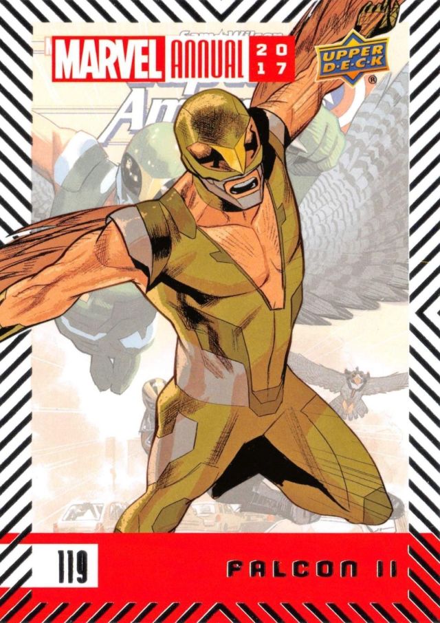 Posted byKing Paradox September 10, 2018July 31, 2019 Leave a comment on Upper Deck Marvel Annual (2017) #119 Falcon II Share this: Share on X (Opens in new window) X Share on Facebook (Opens in new window) Facebook Like Loading... Related Published by King Paradox Just a guy trying to figure out this crazy thing called life. View more posts