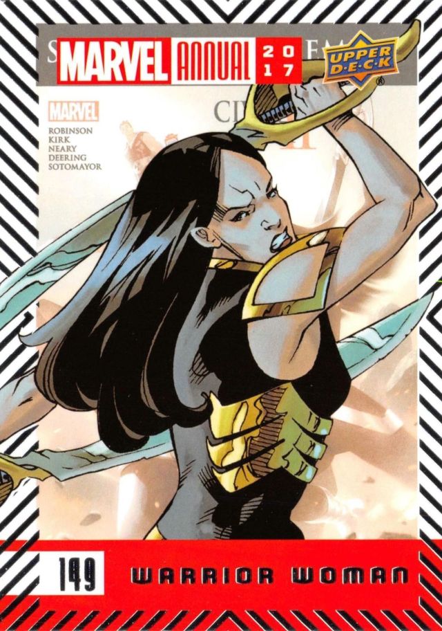 Posted byKing Paradox September 12, 2018July 31, 2019 Leave a comment on Upper Deck Marvel Annual (2017) #149 Warrior Woman Share this: Share on X (Opens in new window) X Share on Facebook (Opens in new window) Facebook Like Loading... Related Published by King Paradox Just a guy trying to figure out this crazy thing called life. View more posts
