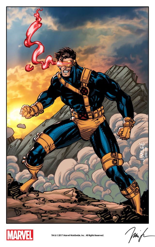 Cyclops by Jim Lee from Impel’s X-Men Trading Card Series (1992) remastered with digital colors by Israel Silva as a variant cover for Marvel’s Champions #10 (2017).